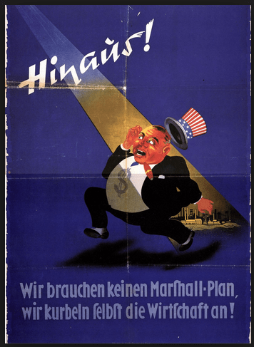 L’affiche a également été plagiée après la dernière guerre en Allemagne, pour protester contre le Plan Marschall des États-Unis.