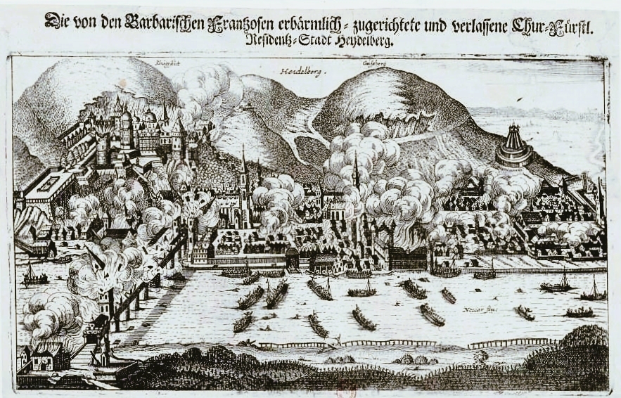 (2) Voir Concursus creditorum et Gottes- Gerichte über Teutschland et surtout Der neue auferwachte… Labroche, qui contient en appendice une description détaillée du bombardement d’Heidelberg et du sac de la vallée du Neckar. Voir aussi l’Appendice.