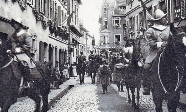 Falsification de l’Histoire, à partir des années 1930, plusieurs municipalités alsaciennes organisent avec la bénédiction des autorités civiles et militaires des commémorations historiques mensongères. Les villes honorent ceux qui ont massacré leurs ancêtres. La troisième République tolère des défilés militaires avec uniformes et drapeaux royalistes.
