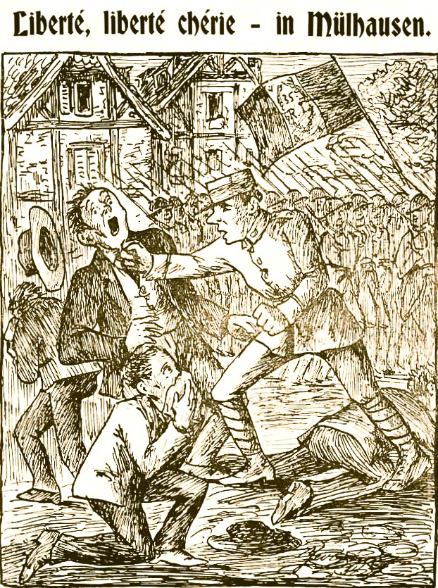 L’Écho de Strasbourg, ajoute que la coutume de se découvrir devant le drapeau n’existant pas en Alsace, de tels procédés n’en sont que plus inqualifiables »