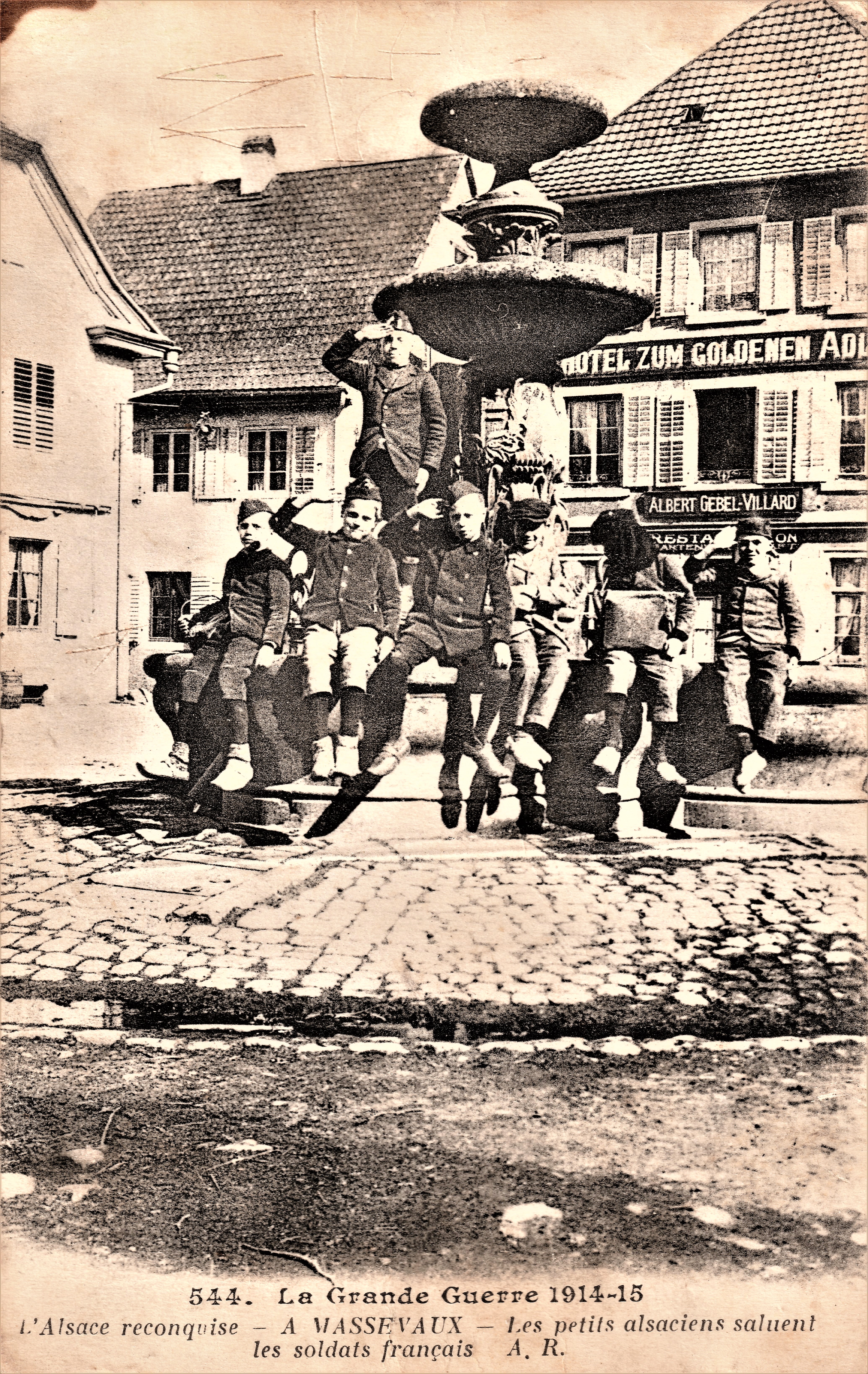 Les garçons sont déguisées en petits Poilus alors que leurs pères sont soit déportés en France, soit soldats dans l’armée impériale, peut-être tués sur le front ouest.