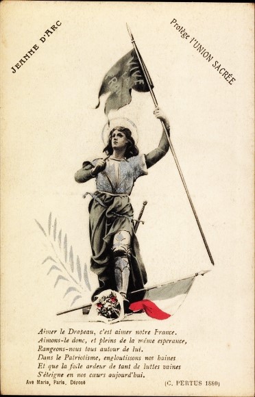 Dès l’Armistice de 1918, Jeanne d’Arc patronne de la France détrône Sainte-Odile patronne de l’Alsace, avec la bénédiction des autorités civiles, militaires et religieuses. Jeanne d’Arc qui protégeait les Poilus, était l’ennemie des soldats alsaciens de l’armée impériale.
