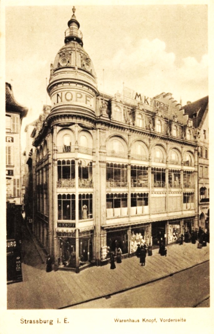 Am 7. Dezember 1918, nur vierzehn Tage nach dem Einmarsch der französischen Truppen in Straßburg, wurden die Nouvelles Galeries im Kaufhaus Knopf in der Rue des Arcades eingerichtet. Sie veröffentlichten im « Elsässer » drei ganzseitige Reklameanzeigen, um den Bestand an Knopf-Waren zum halben Preis zu verkaufen.