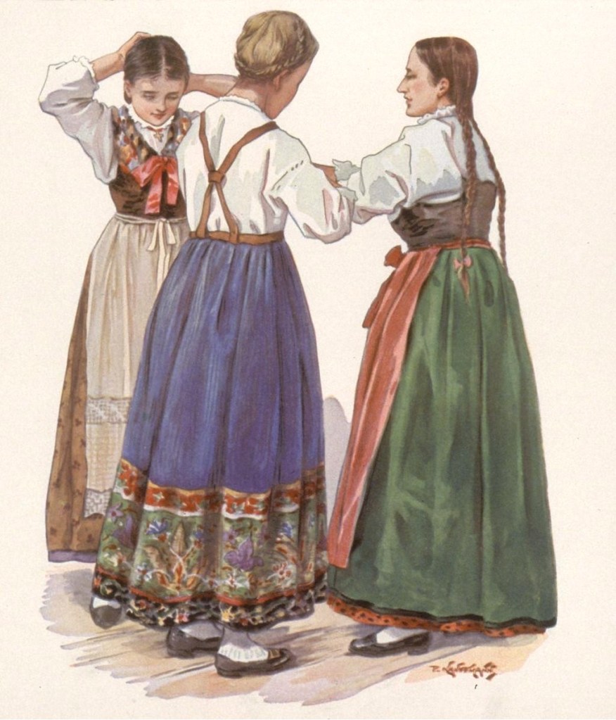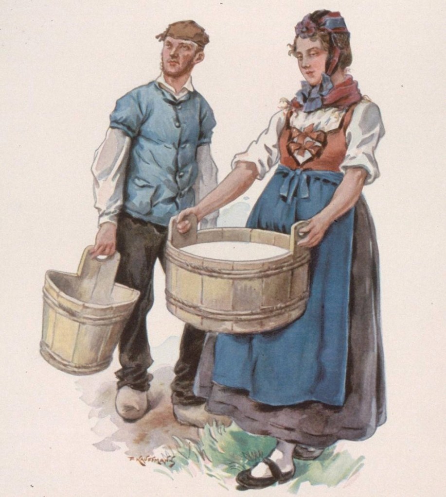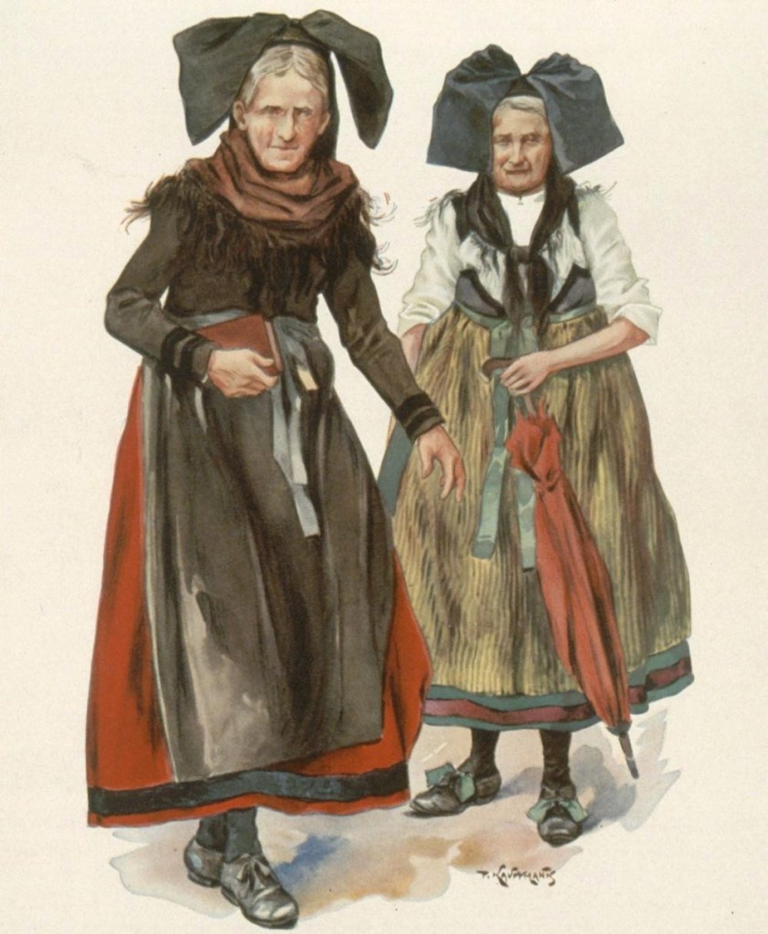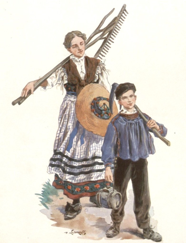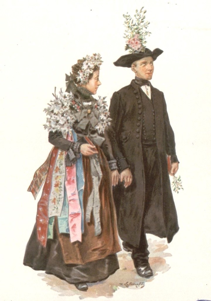 L’illustrateur Paul Kauffmann, né à Belfort en 1849, est le fils de Franz-Josef Kauffmann originaire Saint-Louis et de la bernoise Margaretha Cretin. Tout comme Loux et Spindler, Kauffmann est un témoin important de la vie campagnarde en Alsace durant la période impériale. Les riches habits ne sont portés que les dimanches et jours de fêtes et varient selon le village, la religion, le statut social et familial. La grande coiffe standardisée par la propagande n’existe que dans le Kochesberg.