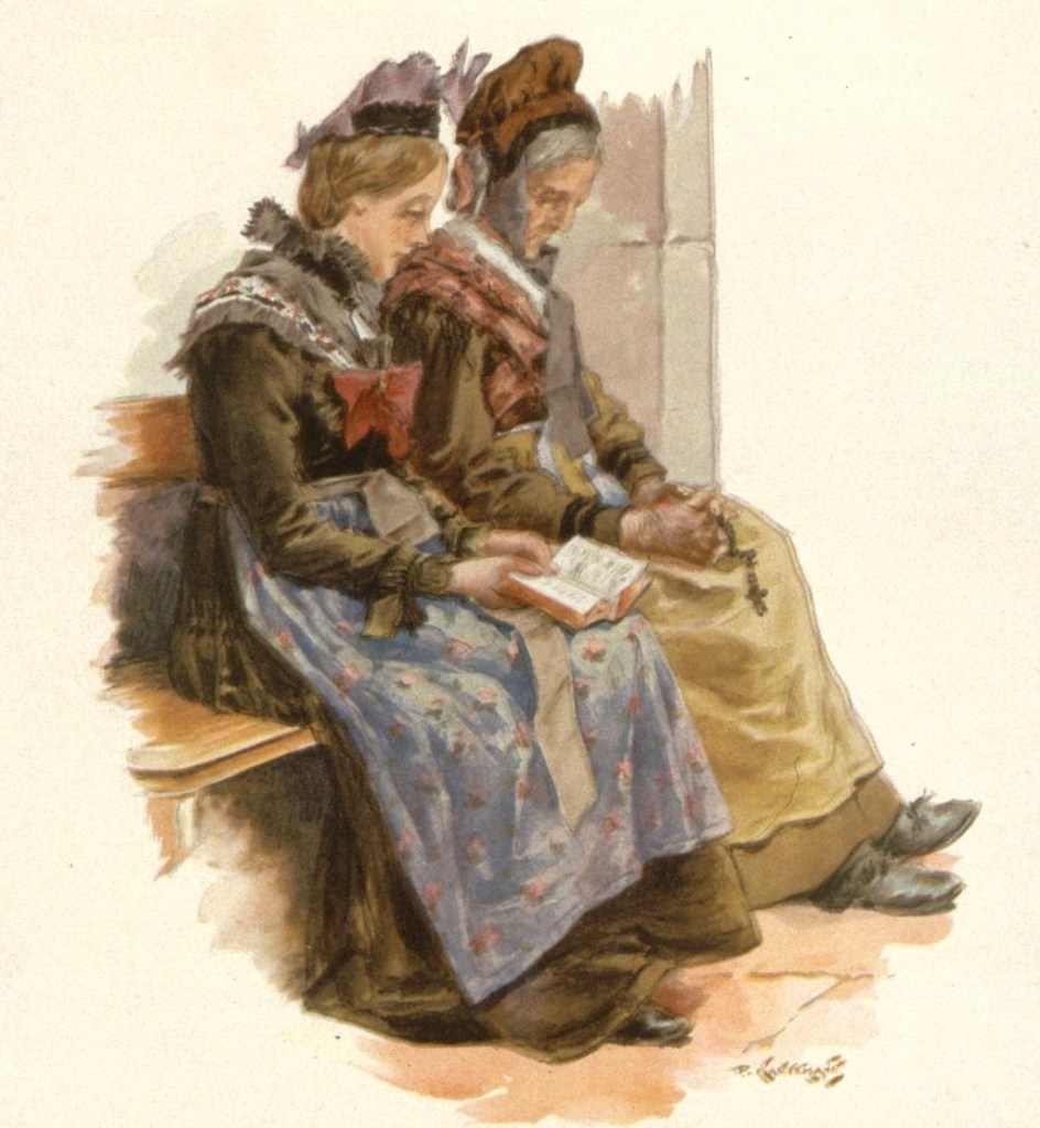 Der Illustrator Paul Kauffmann wurde 1849 in Belfort als Sohn von Franz-Josef Kauffmann aus Saint-Louis und Margaretha Cretin geboren in Bern. Ebenso wie Loux und Spindler ist Kauffmann ein wichtiger Zeuge des Landlebens im Elsass während der Kaiserzeit. Die reiche Kleidung wird nur an Sonn- und Feiertagen getragen und variiert je nach Dorf, Religion, sozialem und familiärem Status. Die große, von der Propaganda standardisierte Kopfbedeckung gibt es nur in Kochesberg.