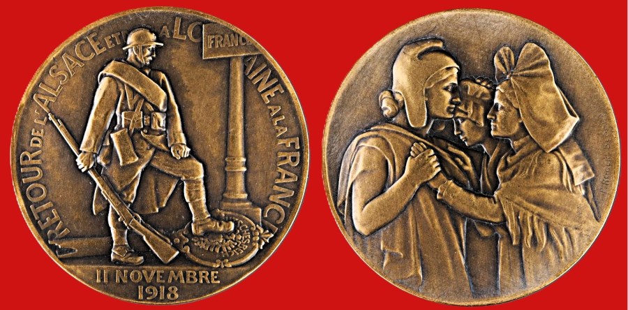 Le Land Elsaß-Lothringen est officiellement « restitué » à la France. De nombreuses rues honorent les anciens ennemis responsables de la mort de nombreux Feldgrauen alsaciens et mosellans.