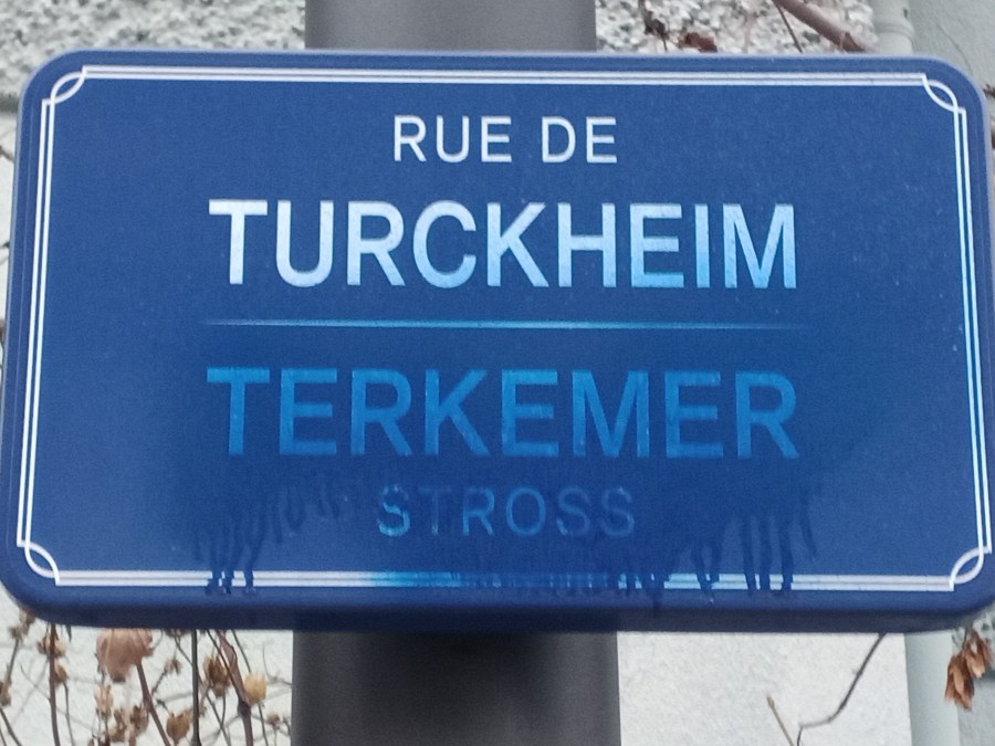 Contrairement à ce que veulent faire croire les opposants germanophobes, les plaques de rues ne sont pas traduites en allemand, mais en français. Ancienne dénomination : Türkheimer Strasse Nouvelle dénomination : Rue de Turckheim