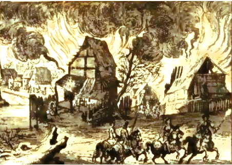 Die Misere der Elsässer und Lothringer begann mit dem Vertrag von Bärwalde, der am 23. Januar 1631 zwischen Frankreich und Schweden unterzeichnet wurde. Bis dahin waren das Elsass und Lothringen vom Dreißigjährigen Krieg (1618-1648) verschont geblieben. Die Ankunft der Schweden, die im Sold der Franzosen standen, sollte das friedliche Land unserer Vorfahren in eine Hölle verwandeln. Die Franzosen werden das traurige Werk vollenden. Die schlimmsten Gräuel wurden begangen: Niederbrennen von Dörfern, Folter, Massaker, Vergewaltigungen. Zusammen mit der Hungersnot, die durch den Diebstahl von Vorräten und Vieh verursacht wurde, verschwand mehr als die Hälfte der Bevölkerung.