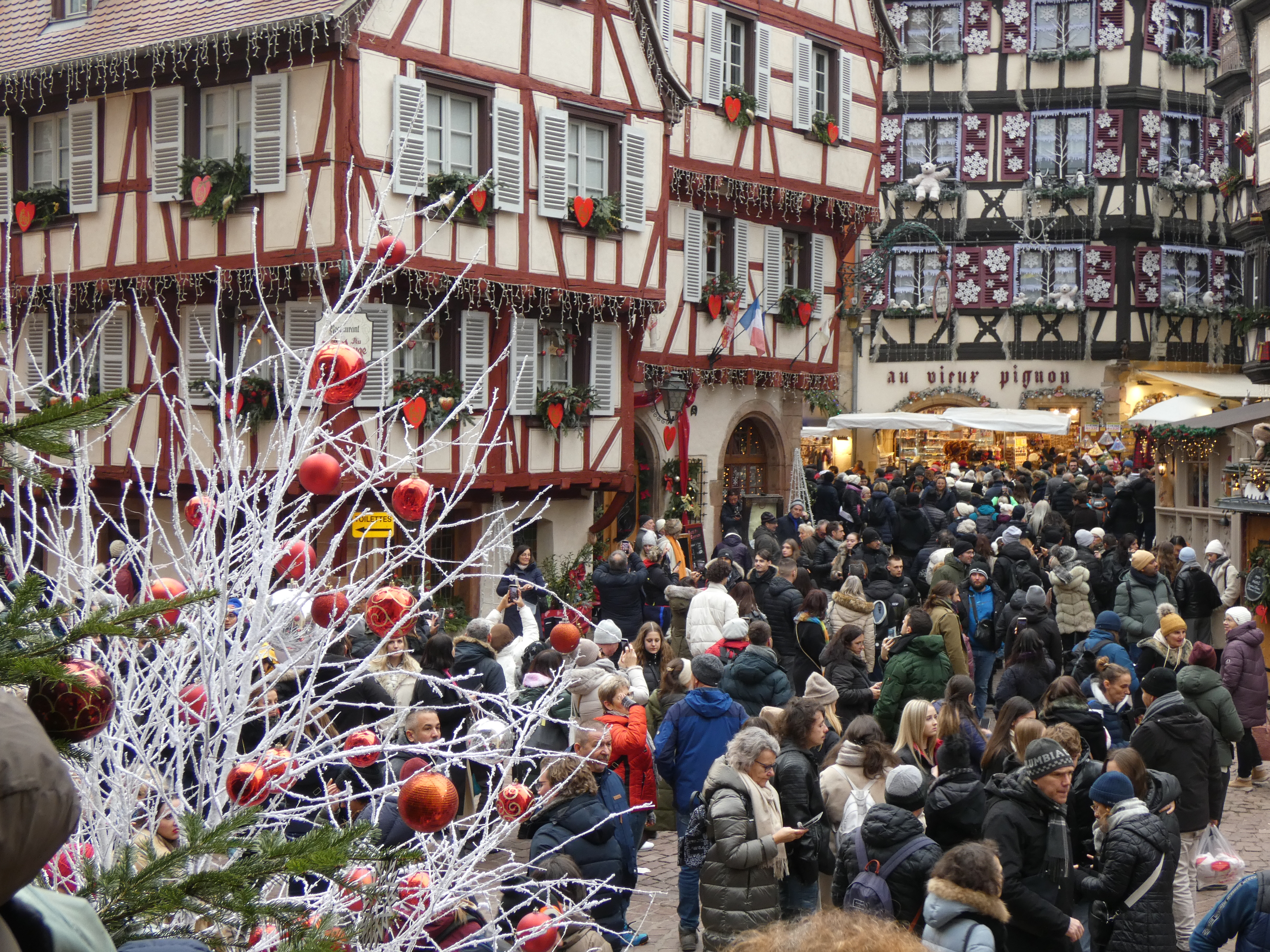 La magie de Noël a disparu, elle est pour le tiroir-caisse des commerçants, pas pour les habitants privée de la quiétude de leur ville envahie de hordes de touristes. Le Vieux-Colmar médiéval est minuscule et ne peut pas absorber des millions de touristes. Il est transformé en horrible parc d’attractions. La ville a perdu son charme, le patrimoine historique est pollué par des horreurs qui dégoulinent de certaines façades médiévales 365 jours par an. Les commerces traditionnels sont remplacés par des magasins de souvenirs, des marchands de nougats, de caramels et de savons. Il faut faire des kilomètres pour acheter un téléphone ou un pot de peinture en périphérie de la ville. Les prix des restaurants du centre ont fortement augmenté, et la petite carte de brasserie a disparu.