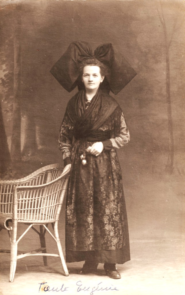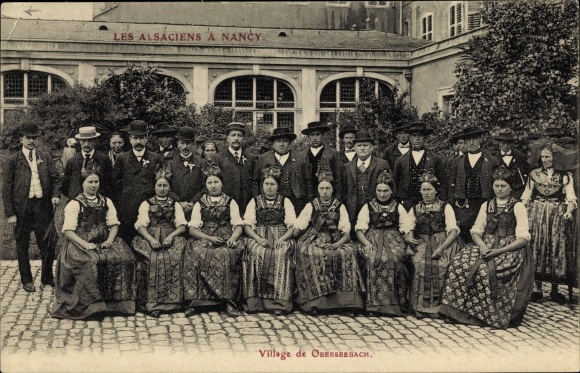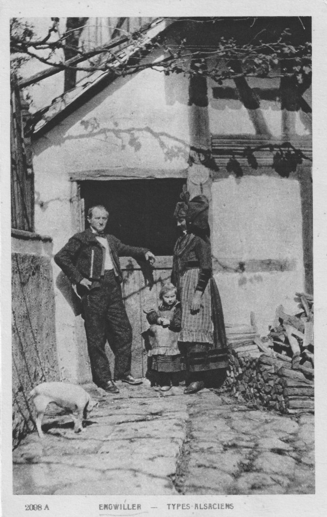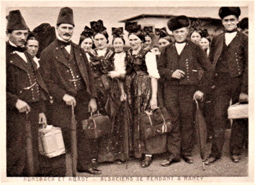 Les habits traditionnels alsaciens varient d’une bourgade à l’autre. Ils ont un point commun, les robes descendent aux chevilles. Le Schlupfkàpp, la grande coiffe à nœud, était uniquement porté dans le nord de l’Alsace. Après la guerre de 1870, la propagande a créé un ridicule déguisement standard trop court, surmonté d’une coiffe à cocarde tricolore.