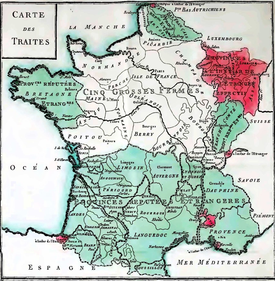 Jusqu’à la Révolution française, l’Alsace était séparée de la France par une frontière douanière. Elle avait le statut de province étrangère au royaume. (Provinces à l’instar de l’étranger effectif).